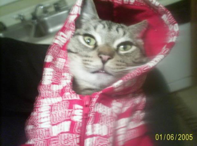 These cute little kittens are all covered in cute little hoodies. They look so comfortable and cuddly. These hoodies can be made out of anything but the snuggest ones are most likely knitted with a lot of love.